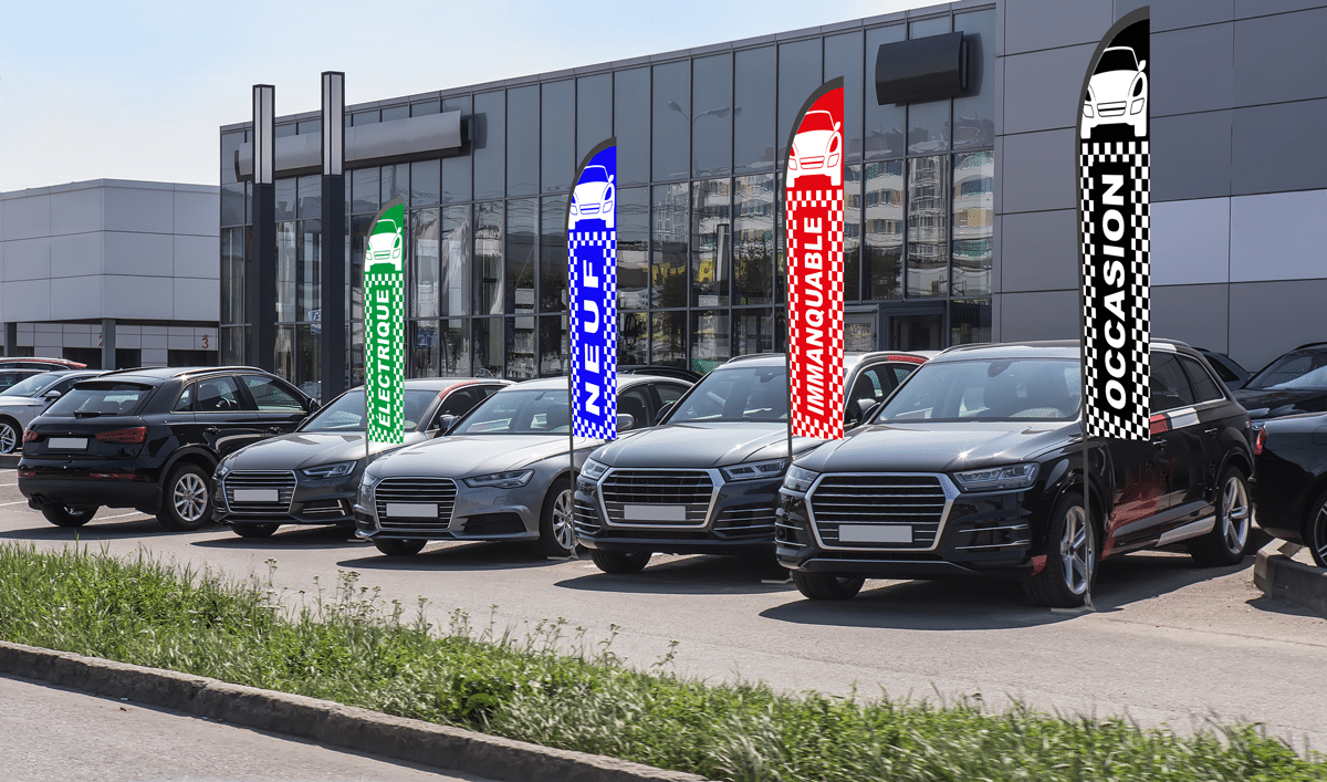 Oriflamme 85x465 imprimé + pied voiture inclus